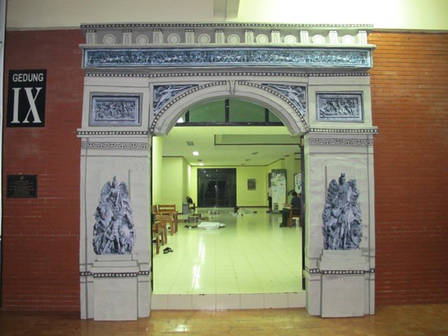 Mereka yang kuliah dan pernah kuliah di FIB UI pasti mengenal Sandy ‘Bagong’ Surakusumah. Kalau pun tidak secara langsung mengenal orangnya, pasti mengenal karyanya. Di banyak event, ia melukis mural dan membangun karya-karya instalasi dari yang kecil sampai yang raksasa. Dari bentuk tetumbuhan, pepohonan, hingga gapura dan gedung. Ia juga membuat berbagai macam karya sesuai wacana yang hendak dibawakan: dari perjuangan gerakan 98, sampai menyindir rektor ketika biaya kuliah mahal dan mahasiswa miskin tak bisa kuliah. Kebanyakan karya itu ia bangun dengan bahan-bahan sederhana: bambu, lem, kertas koran, pulp, cat tembok, cat kayu, kaso, kawat dan kadang hal-hal yang tak masuk akal untuk jadi karya seni: dedaunan kering, batang-batang pohon, botol plastik, tanah–Sandy Bagong adalah ahlinya mix media. Ia adalah satu dari tiga begawan seni rupa kontemporer FIB UI (versi saya) selain Mulyadi Iskandar dan Anca Dudy.