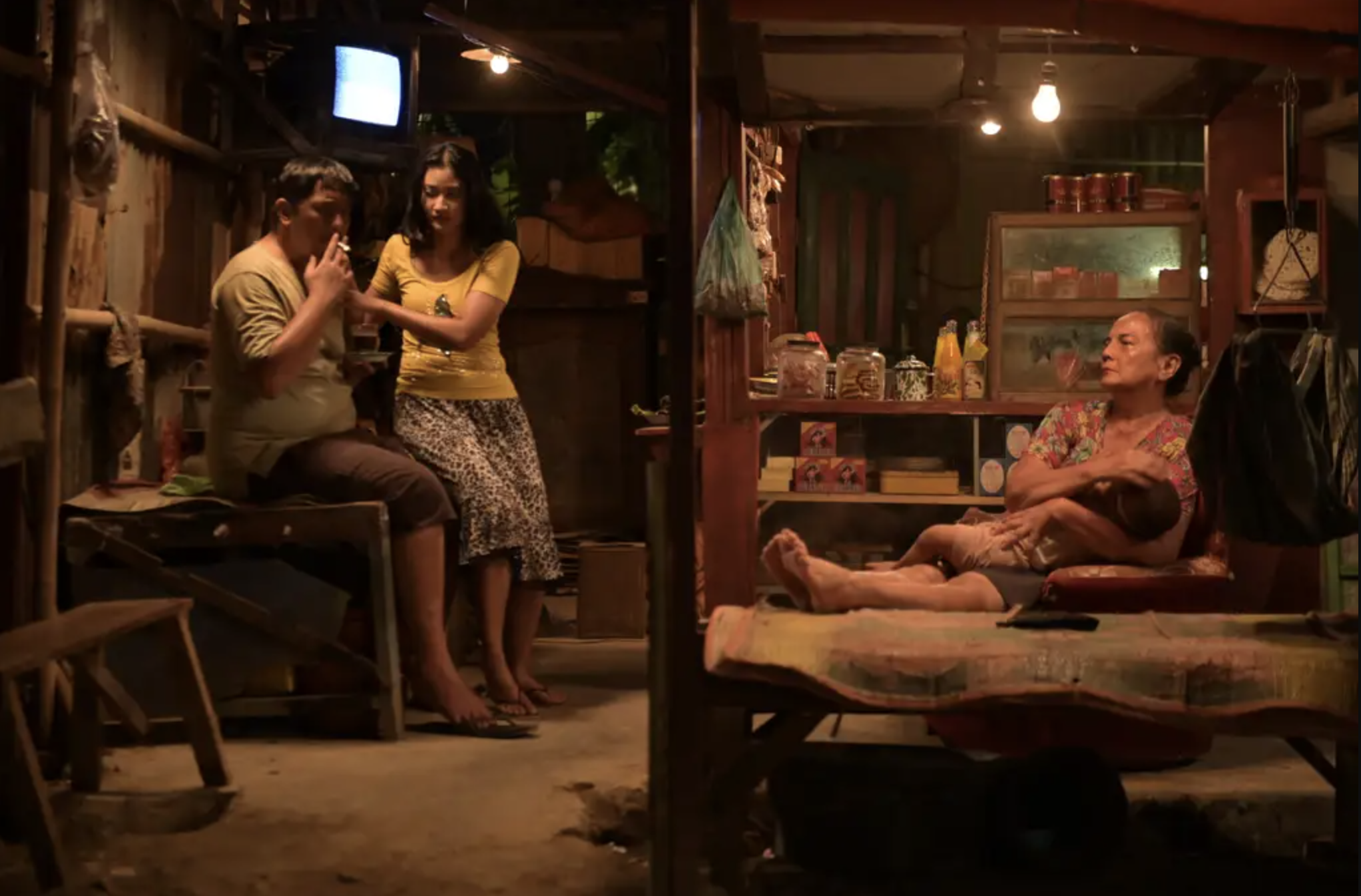 Sinematografi realisme sosial menyatukan dua dunia di dalam satu frame. Dunia ibu yang bekerja, dan dunia nenek yang merawat cucunya. Semua disatukan dalam sebuah materialisme: ibu yang pelacur, pelanggan, matron, dan anak lelaki si pelacur. Penonton melihatnya terpisah dalam garis tengah, sementara tokoh ada di ruang yang sama: sebuah warung remang dimana kerja dan keluarga menyatu.