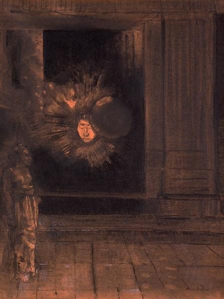 Kita mulai dengan lemari Alif yang punya makna seperti Pintu Terlarang (2009). Bedanya dengan Pintu Terlarang berwarna merah yang di dalamnya dunia kenyataan Gambir (Fachry Albar), lemari yang menyimpan rahasia Alif ada di kamar kerjanya secara gamblang dan Alif yang tidak amnesia sudah tahu rahasia apa yang ada di situ. Ini mengingatkan saya dengan lukisan L’Apparition karya Odilon Redon (1840-1913), yang seringkali bereksperimen dengan bentuk-bentuk mengabur, hantu-hantu dari dalam diri. Ini yang membedakan style LKMK dengan Pintu Terlarang: cara mempresentasikan kotak pandora.