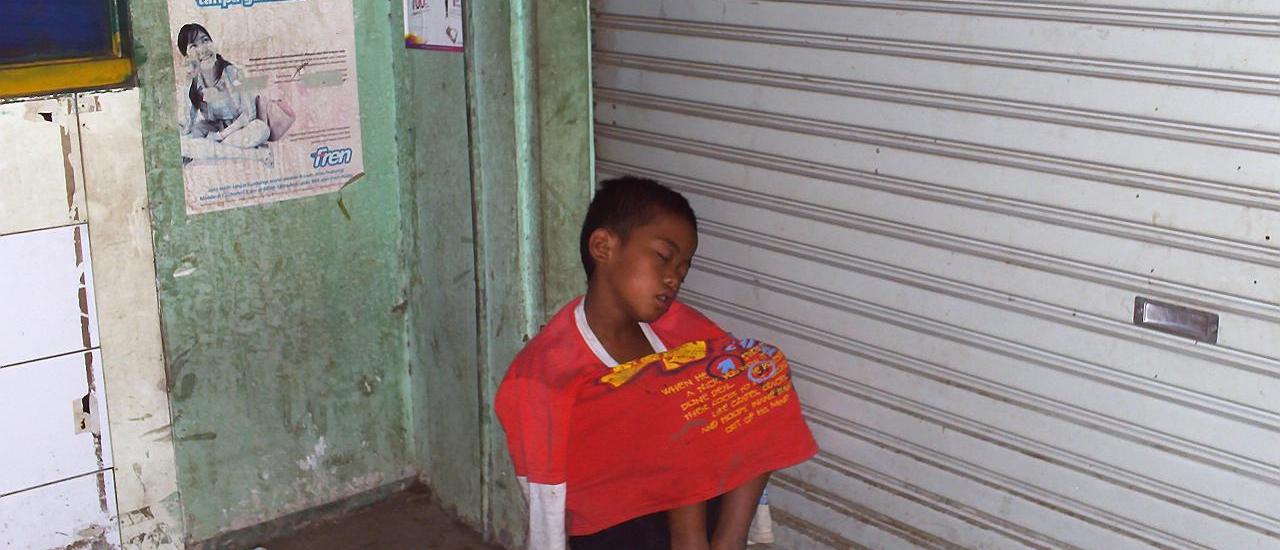 Saya dudukkan si anak di dekat penjual minuman, dan saya meminta air. Si pejalan kaki mengambilkan sebotol air mineral. Saya bukakan botol air untuk anak itu dan ia meminumnya sambil terisak-isak. Ia terus memegang dada kirinya, ketika sudah tenang, si anak yang babak belur itu mulai tidak bisa berkata apa-apa, hanya menangis terisak. Mungkin karena tidak ada yang mengancamnya lagi, atau mungkin karena ia kesakitan. Semua hinaan yang keluar dari mulutnya hanya cara ia membela diri, karena tubuhnya terlalu kecil untuk melawan.